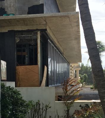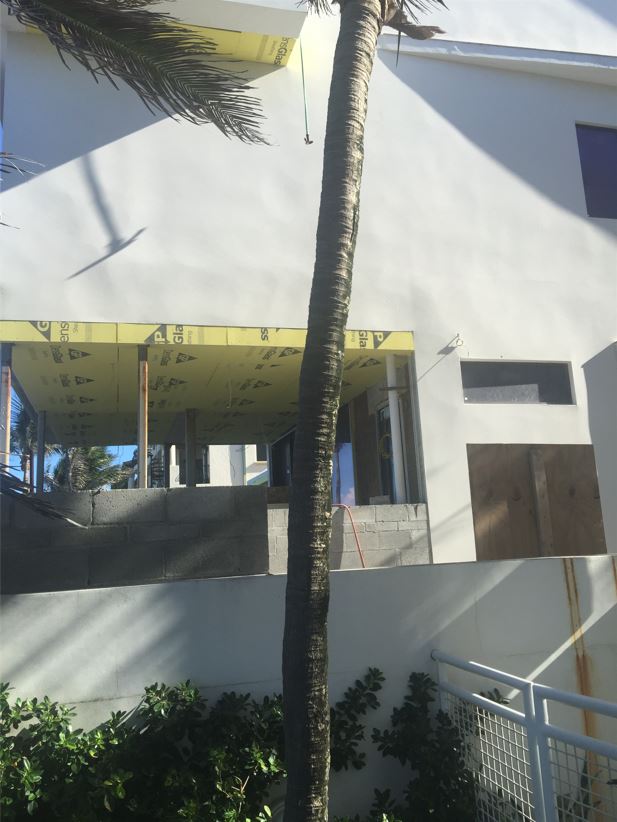 - Exposure to the elements. The front of the home has been wide open for months on end (see images above), exposing the interior, electrical and plumbing to sea spray. Each stage of this project has taken months too long. The overall lack of timeliness should concern any potential buyer. The developers finally installed windows after months and months of exposure, but only installed half of them, leaving wires, piping and metal 2 x 4s exposed. Even today, there are still some missing windows. The home's interior was exposed to the elements during Tropical Storm Eta, which hit the area with 55 mph winds and seven inches of rain. One should wonder what the inside of this house looks like given the extended period of exposure.